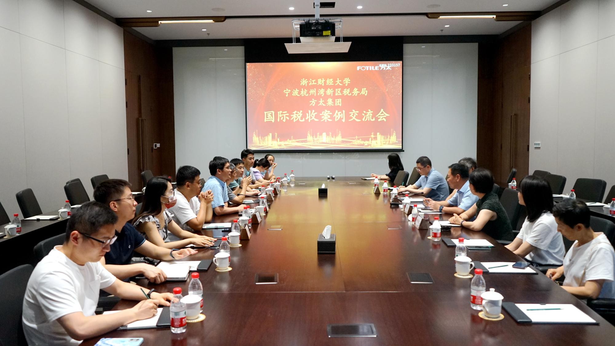 6月18日下午,yl23411永利税务系和宁波杭州湾新区税务局在方太集团总部召开国际税收案例交流会,国际税收管理处处长钱正平和税务系教职工代表10余人参加会议。