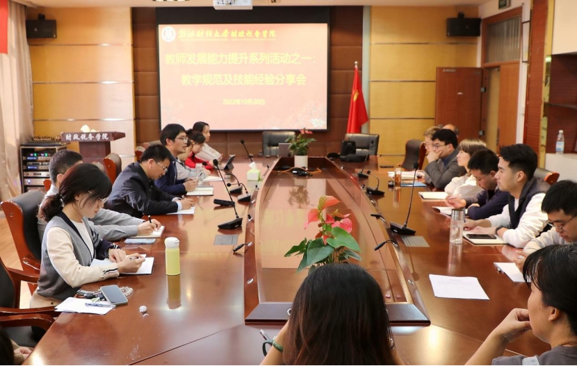 10月20日,我院举行以教学规范及技能经验分享为主题的教师发展能力提升活动。院长司言武,教学副院长张帆,学院教学督导组组长骆勤出席活动。学院考核期内的青年教师等近30余人参加了本次活动,活动还吸引了会计学院、数据科学学院、马克思主义学院等兄弟学院的青年教师参加。本次活动由教学副院长张帆主持。