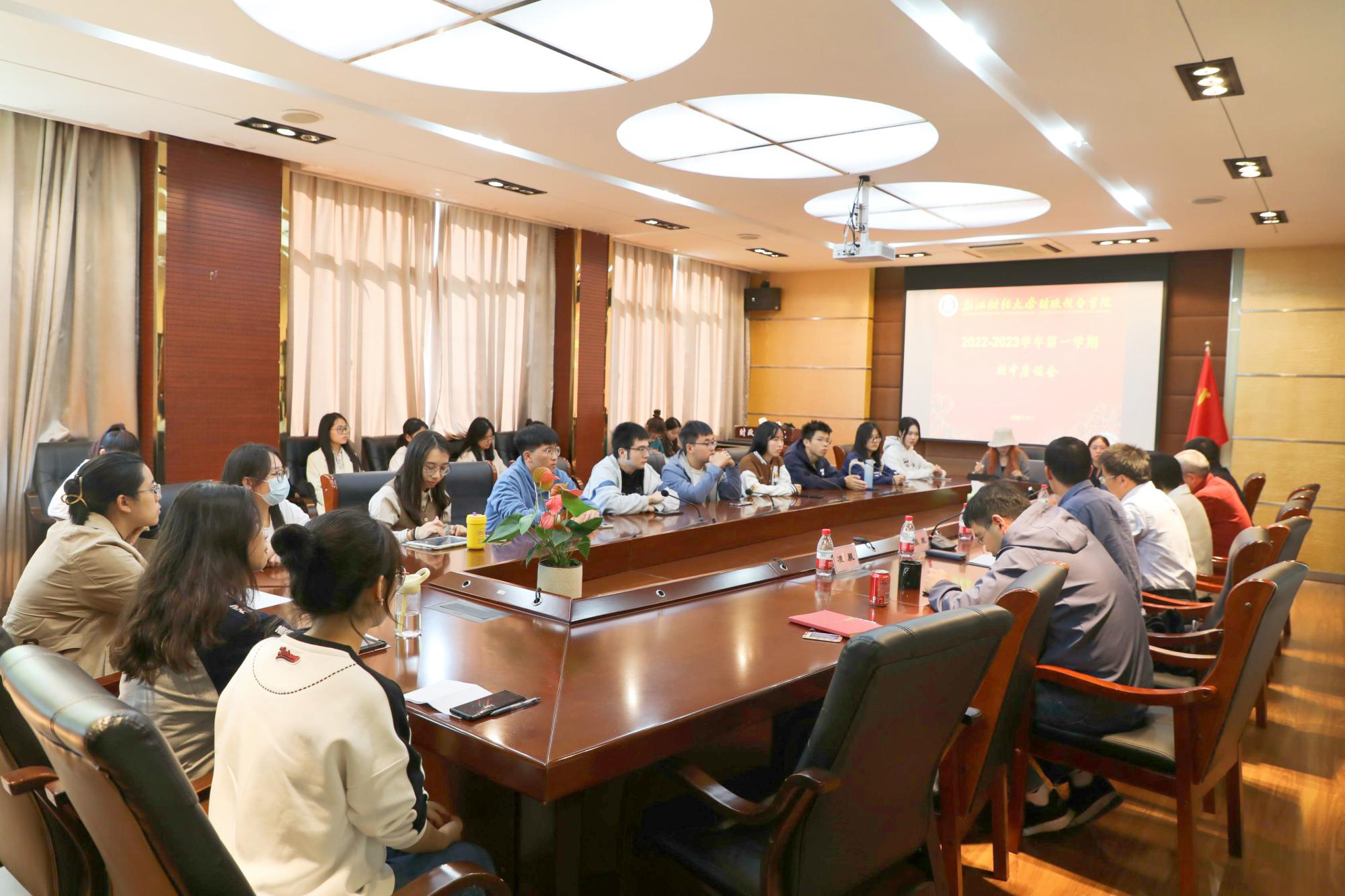 本网讯 11月8日下午,yl23411永利在学院楼307会议室召开了本科生期中教学座谈会,本次会议由教学副院长张帆主持。院长司言武,党委副书记徐丽玲,财政系主任凌晨,本科教学督导组成员王序坤、曹爱民,教学秘书方梦澜出席,全体教学信息员参加会议。