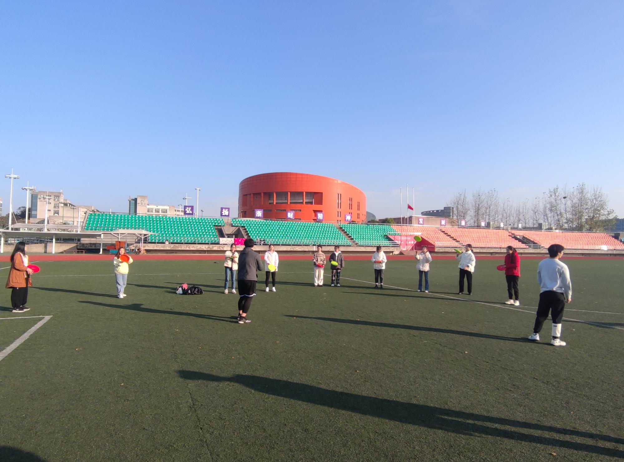 12月6日下午3点,我院举行了红鹄益站之飞盘训练营活动,特邀学校“大盘鹅队”队员龚成章同学前来指导。
