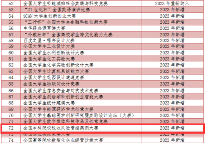 3月22日,中国高等教育学会高校竞赛评估与管理体系研究专家工作组发布《2022全国普通高校大学生竞赛分析报告》(以下简称《分析报告》),我院申报的“全国本科院校税收风险管控案例大赛”成功入选《分析报告》竞赛目录。