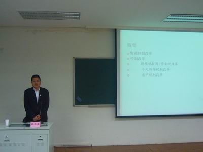 2011年4月7日14点30分,中国社会科学院财政与贸易经济研究所研究员、财政研究室主任杨志勇老师在学院楼106为学院师生作了题为“未来中国财政政策猜想”的精彩讲座,讲座由学院副院长张雷宝教授主持。