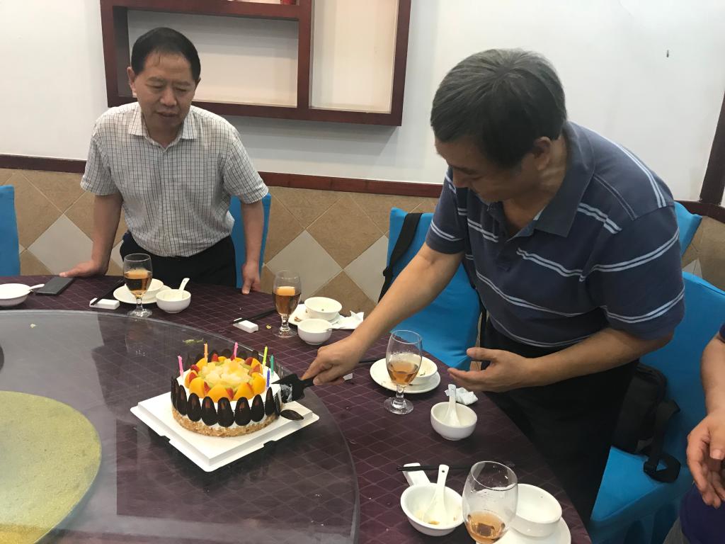 庆生会在一片欢声笑语中开始,席间,贾建业院长以茶代酒,与各位寿星共同举杯祝贺生日快乐,并向各位老师表达谢意。来自不同地方的寿星们互诉家常,谈着自己家乡的趣事,气氛十分融洽。庆生会尾声,贾建业院长、寿星王国辉、劳锦洪和杨树峰三位老师作为寿星代表切开生日蛋糕并分发给大家。