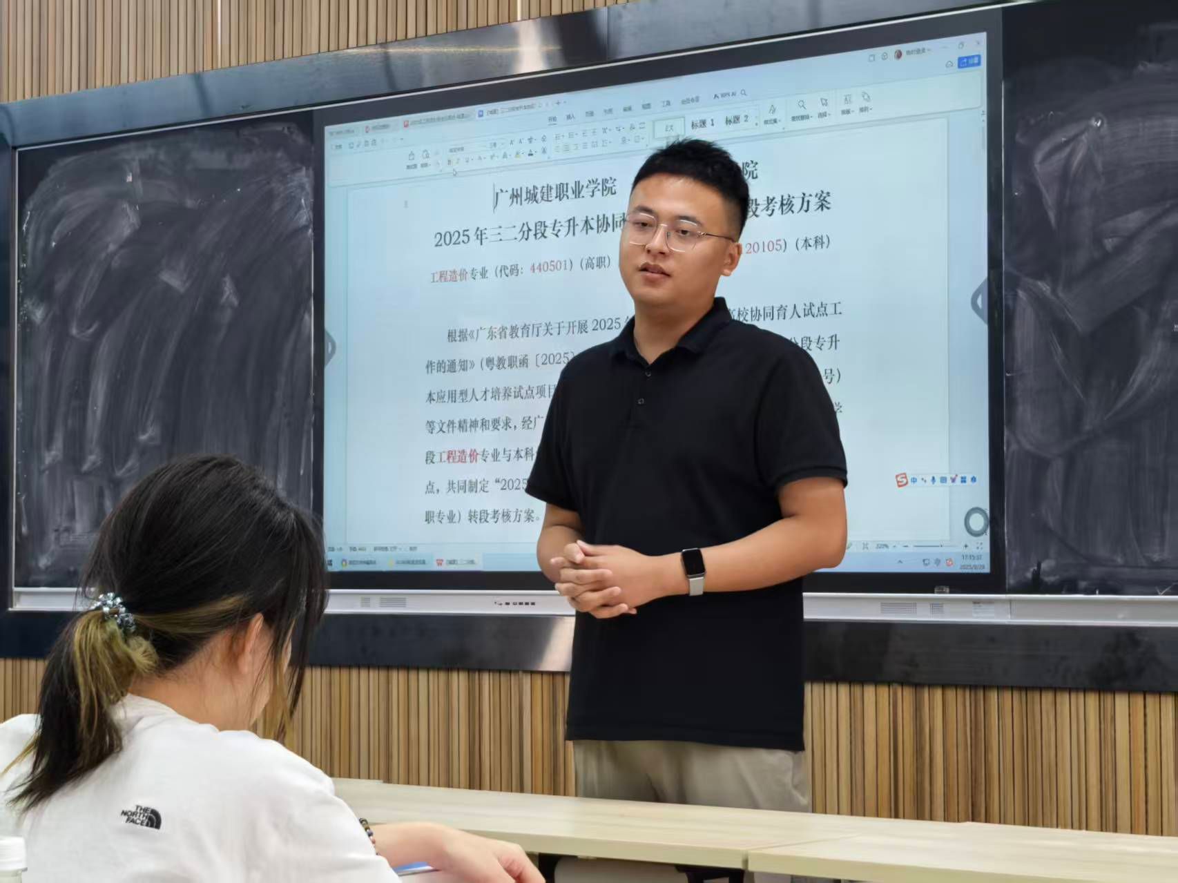 9月29日下午,学院举办2025级工程造价(高本协同育人)班级新生专业教育活动,助力新生明晰专业方向与目标。邀请到对接院校广州理工学院杨林青、蒋浩然、黄佩佩、姚章泽等老师出席,以多元形式开启专业启蒙之旅。