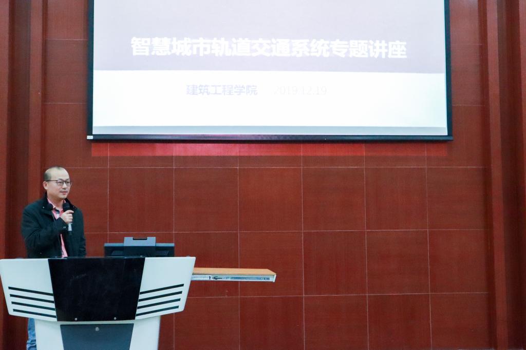 ·12月19日15:00,建筑工程学院市政工程教研室在建工机电楼101报告厅开展了“与时俱进,管理技术双创新——全面打造智慧城市轨道交通系统”的专题讲座。学院院长吴承霞、副院长文健,市政工程教研室全体教师及学院教师代表,市政、BIM专业新生等150多名师生现场聆听。讲座由学院副院长文健主持,广州地铁集团有限公司资深项目经理朱六兵高级工程师主讲。