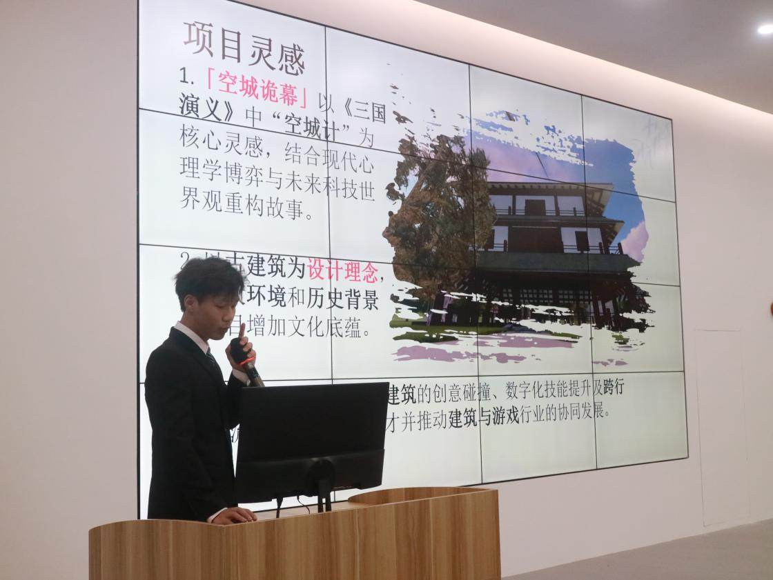 自活动举办以来,以创新的比赛形式,吸引了众多学子们踊跃参与。经过初赛层层选拔,最终五支队伍脱颖而出,在总决赛的舞台上展开巅峰对决。在决赛现场,选手们依次上台现场生动讲解了创作灵感的来源,绘画技巧的运用等方面,全方位展示自己的游戏建筑创意绘画作品。他们不仅在绘画技巧上展现出扎实功底,还深入挖掘作品背后的故事内核,阐述建筑在游戏场景中的功能与意义,将游戏与建筑的创意融合展现得淋漓尽致。