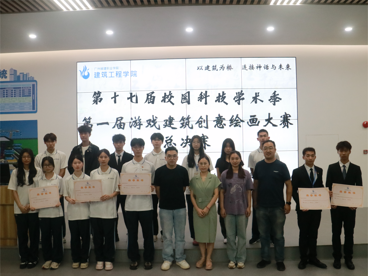 为培育综合高端技术人才,深入推进建筑数字化转型的理论探索与教学实践活动,切实促进教育与产业的深度融合,由共青团广州城建职业学院委员会主办,建筑工程学院学生会学习部承办的第十七届校园科技季之第一届游戏建筑创意绘画总决赛,于2025年5月12日晚上7点30分在建工机电楼B栋204智能建造虚拟仿真室隆重举行。学院建筑设计教研室主任刘圆圆,副主任刘岩以及专业教师卢寅担任评委。