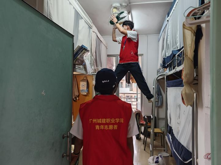 志愿者们清洁风扇