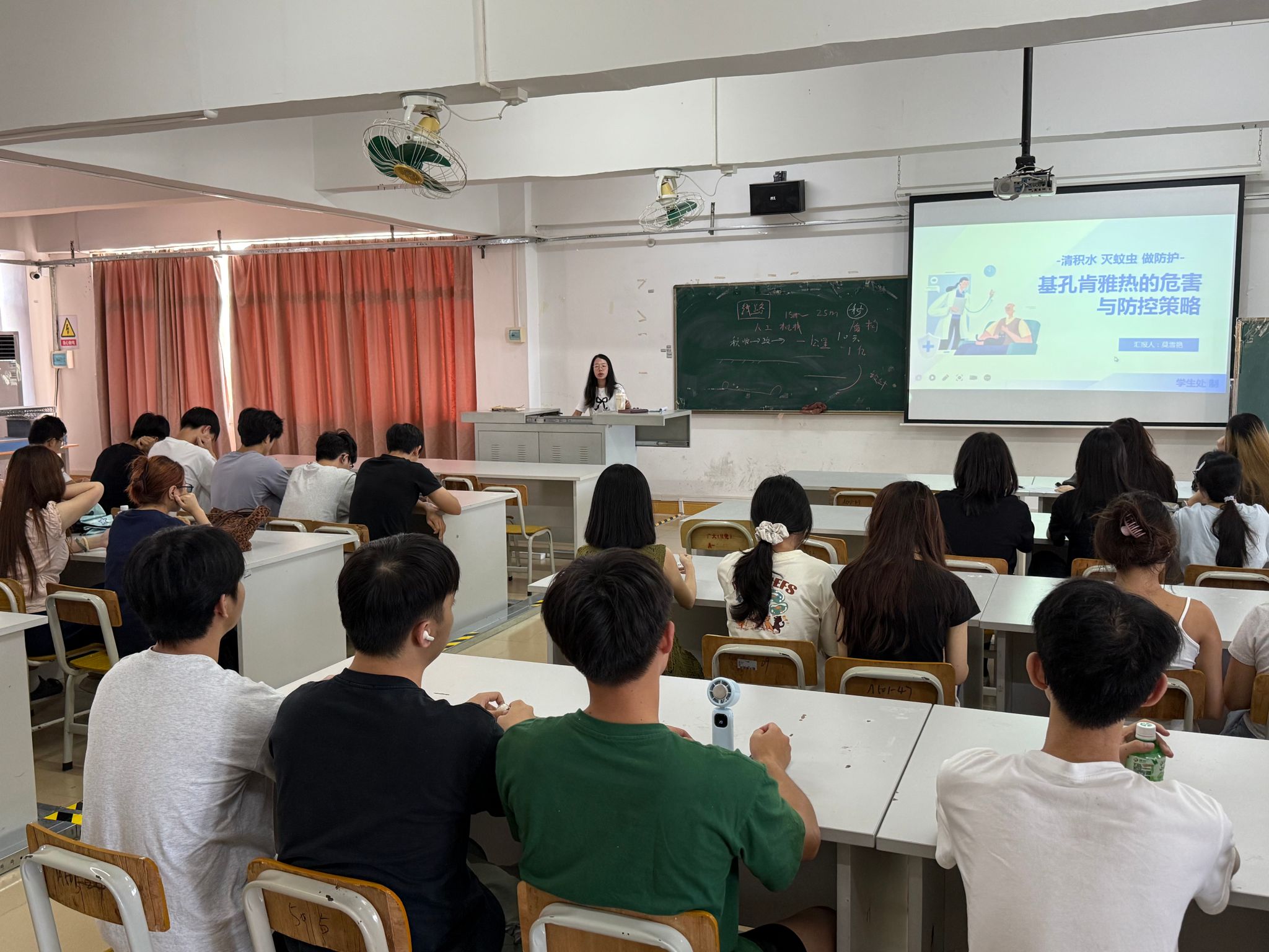 为深入推进爱国主义卫生运动,切实保障学生身体健康与生命安全,落实登革热和基孔肯雅热病毒防控措施,建筑工程学院学工办深入学生课堂和社区,开展“两热”防控宣传教育活动,以扎实举措筑牢校园健康安全屏障。