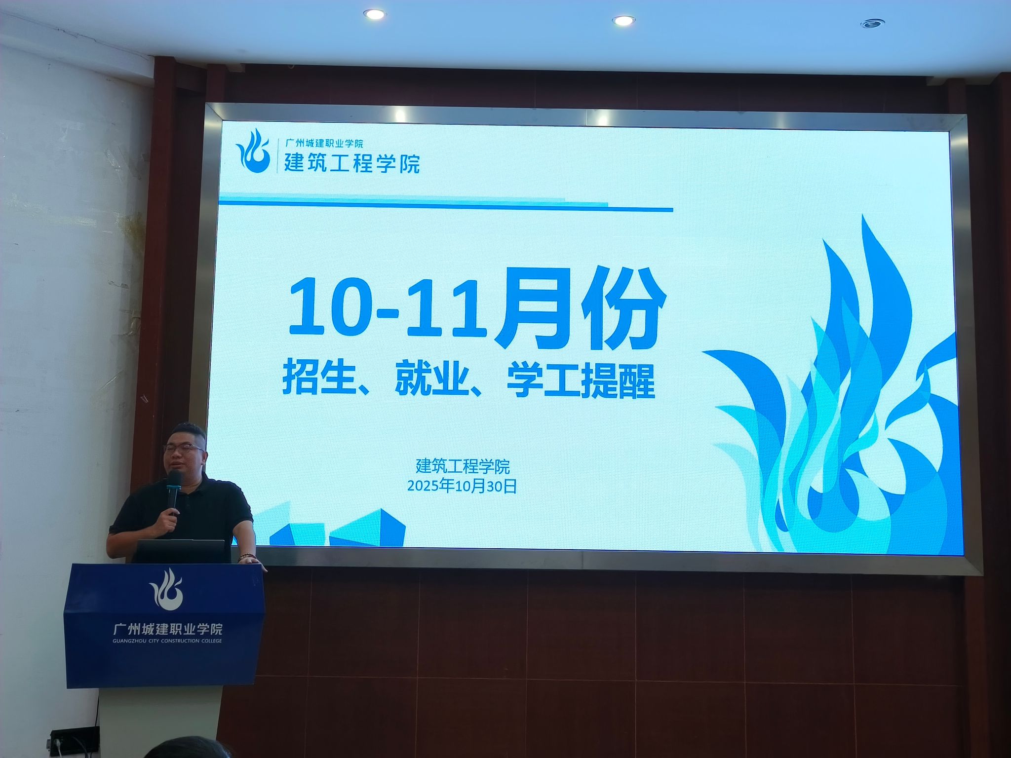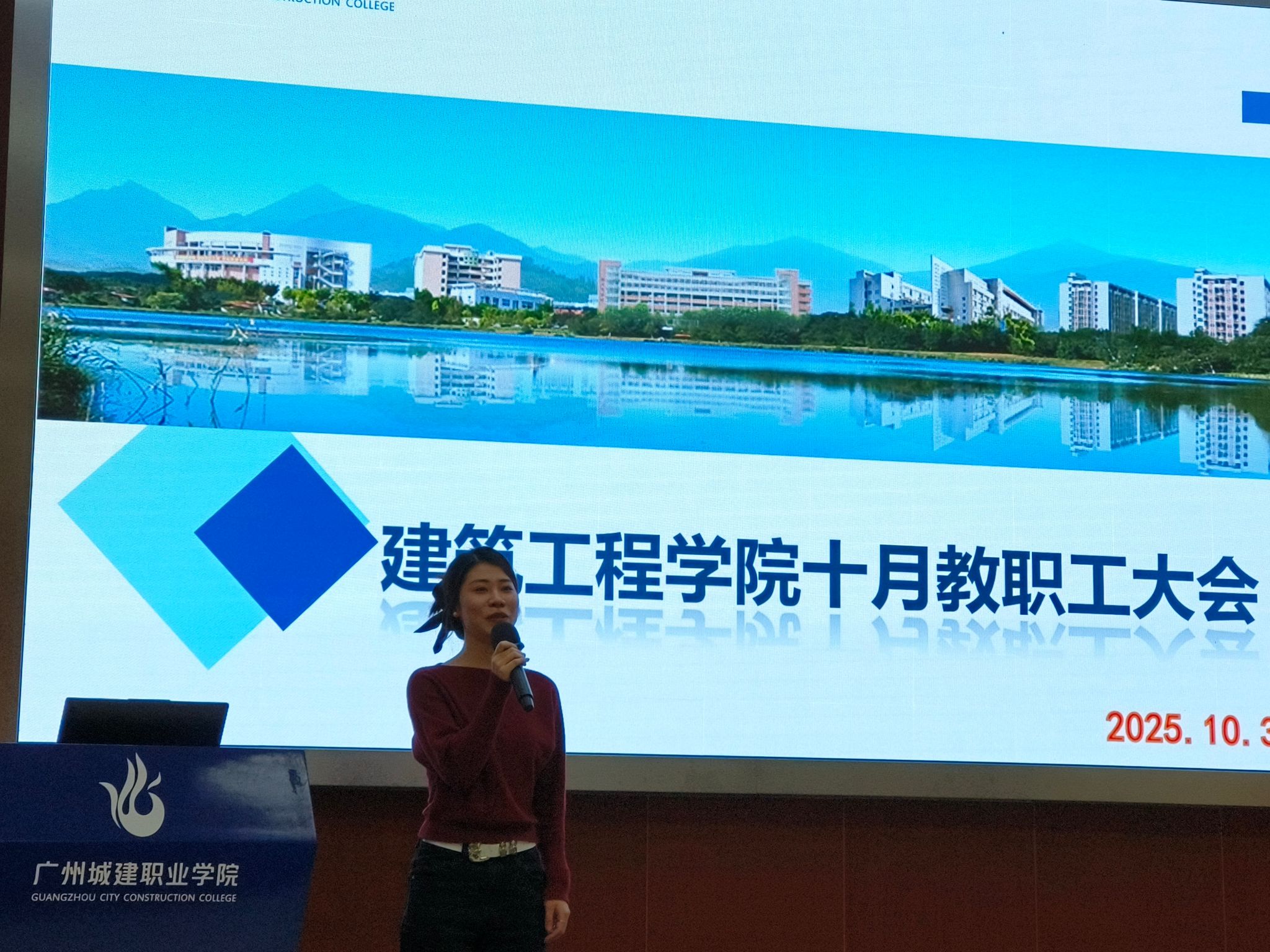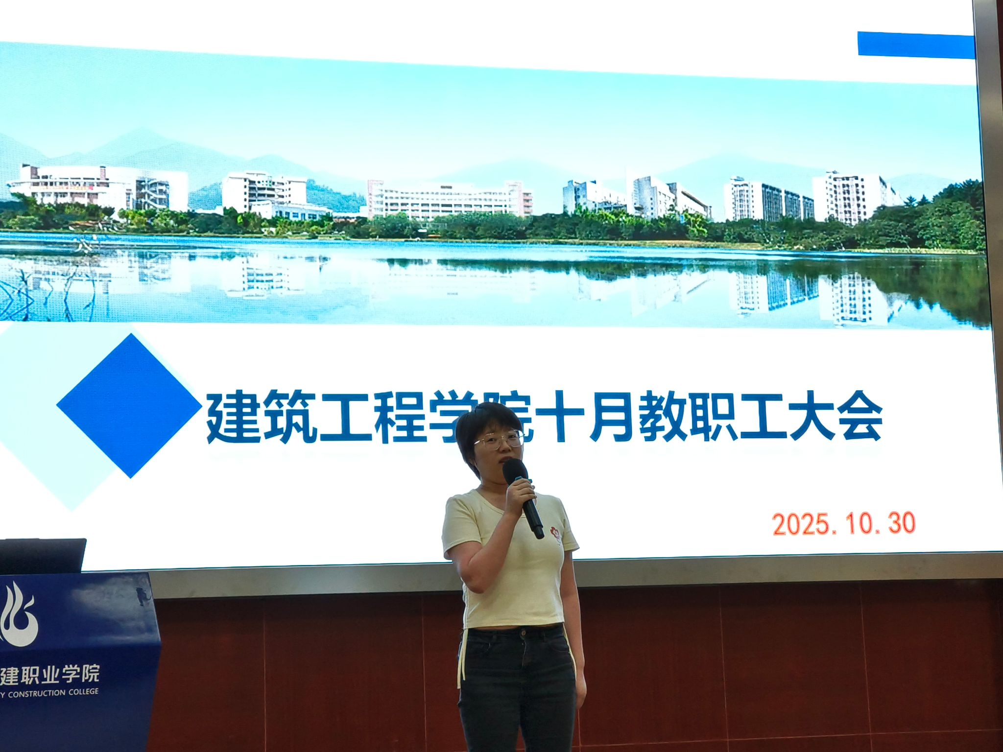 10月30日下午,学院在建工机电楼101报告厅召开全体教职工大会,院长吴承霞、副院长彭聪及全体教职工出席会议,会议由办公室主任胡雪婷主持。