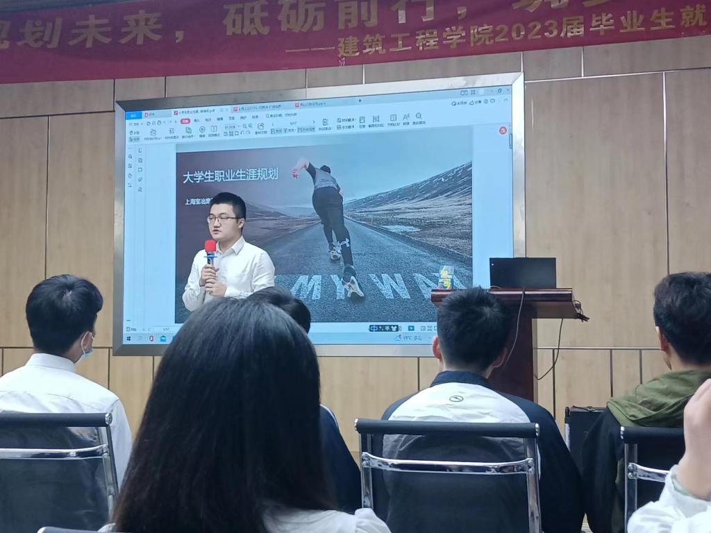 为促进我校毕业生积极自主就业,增强就业竞争力和竞争意识,2022年11月3日14:30我院在建工机电楼3B-204E报告厅开展了以“‘职’点迷津,筑梦前行”为主题的毕业生就业讲座。2023届毕业生辅导员及毕业生参加讲座。