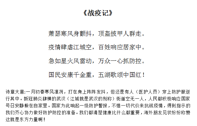 借由此次网络征稿,学生向平凡又伟大的一线的医护人员表达崇高由感恩之情,体悟坚守岗位的敬业之情,感怀无私的奉献之情,从而提升自己的价值观,进一步加强疫情防控期间的思想政治教育,进一步深化爱国主义教育,也督促着每位同学从自身做起,树立好当代大学生的模范作用,为这场防疫战尽一份自己的力量。