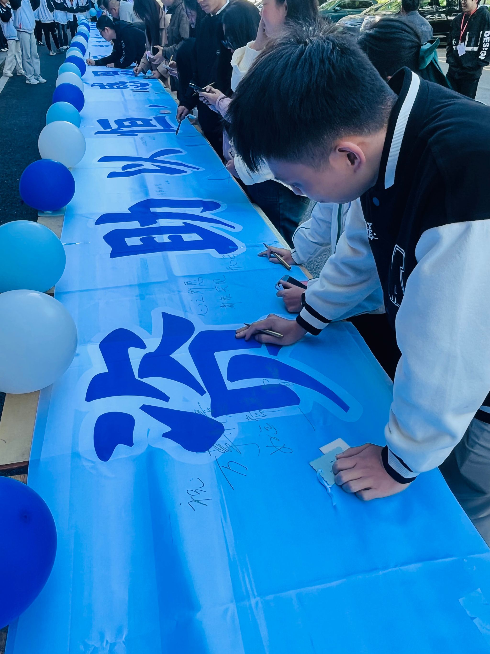 活动现场摆放着一条长达20米,写着“资助以恒,感恩无尽,学在建工,筑梦未来!”标语的横幅。活动伊始,吸引了众多师生参与,他们纷纷拿起笔,在横幅上写下对家人、老师、同学、朋友的感谢语,受国家资助的学生更是满怀感恩写下对国家及资助政策的感激。