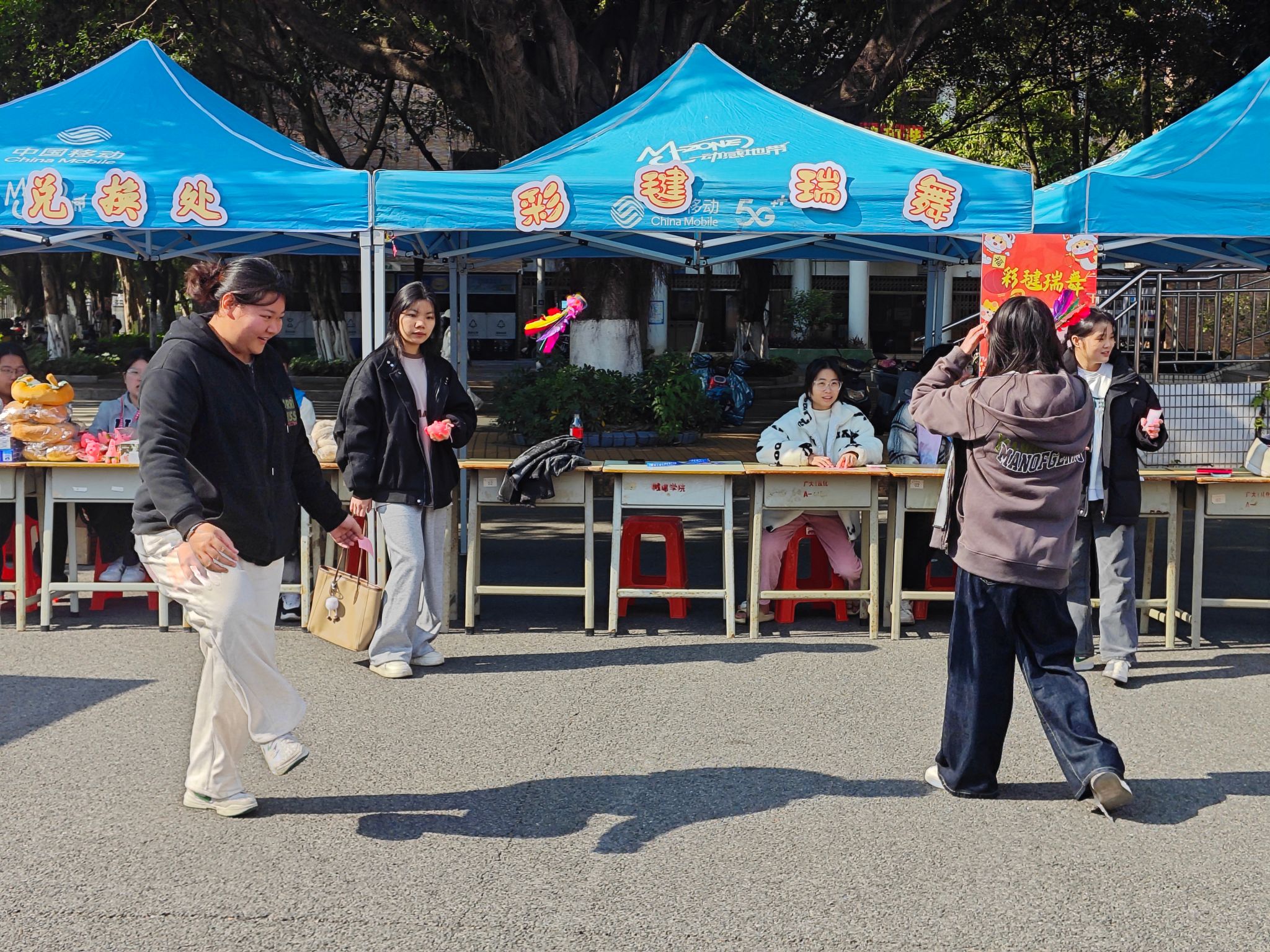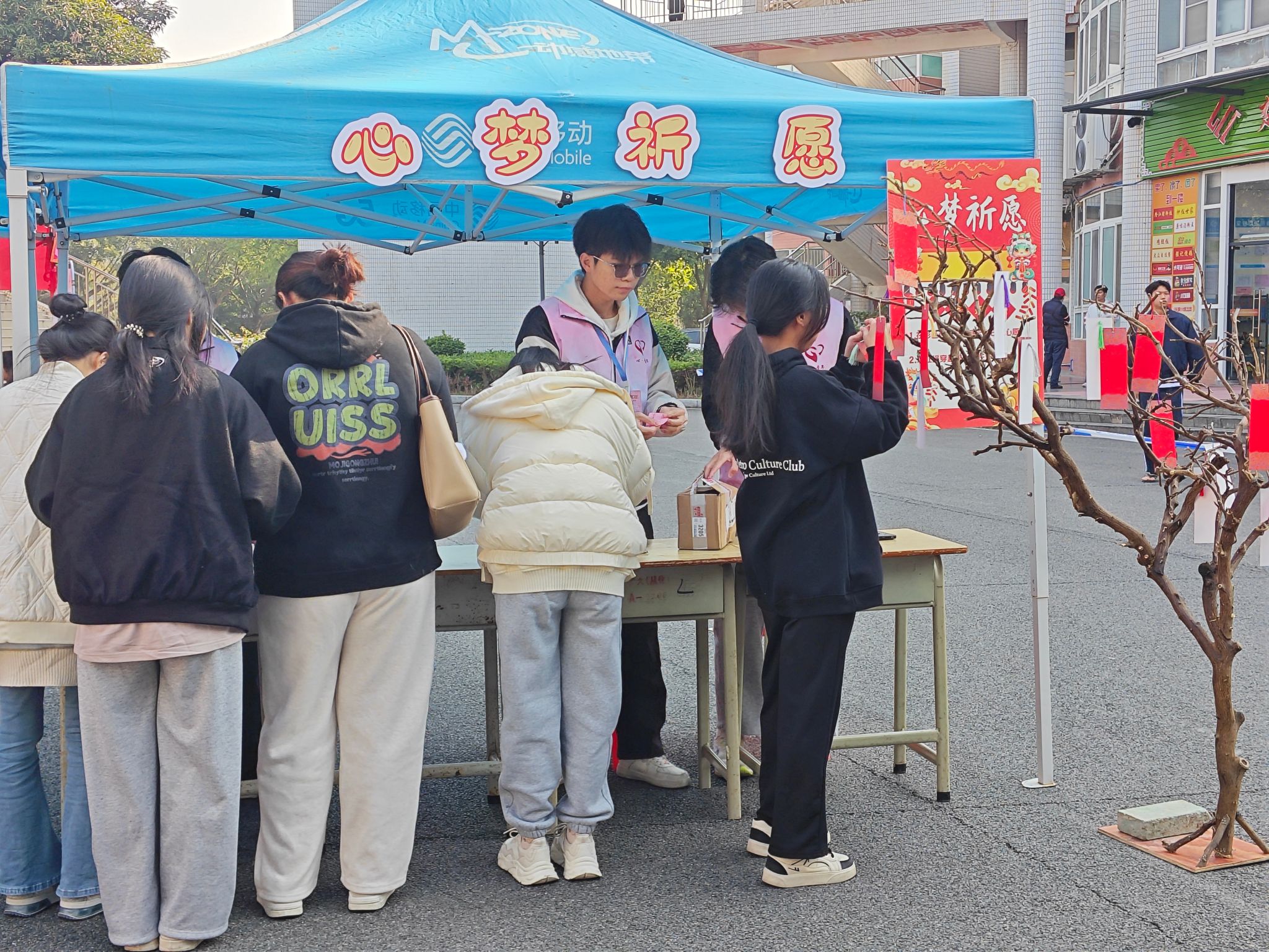 本次游园会精心设计了多个互动趣味区域,满足不同学生的兴趣爱好。活动当天,游园区洋溢着浓厚的节日氛围。在“心梦祈愿”区域,同学们纷纷提笔写下新年愿望,挂在“许愿树”上,寄托着对未来的美好期盼。在“福运投壶”环节中,同学们不仅体验到了神投手的快感,也感受到了传统文化的魅力。“喜运福球”和“彩毽瑞舞”游戏也深受同学们喜爱,通过夹取乒乓球、踢毽子考验同学们的耐心,还激发了大家的竞争意识。“欢颜猜谜”和“吉祥转运”则考察同学们的应变能力和思维模式。同学们在欢声笑语中完成了每一个项目,并兑换了心仪的礼物。