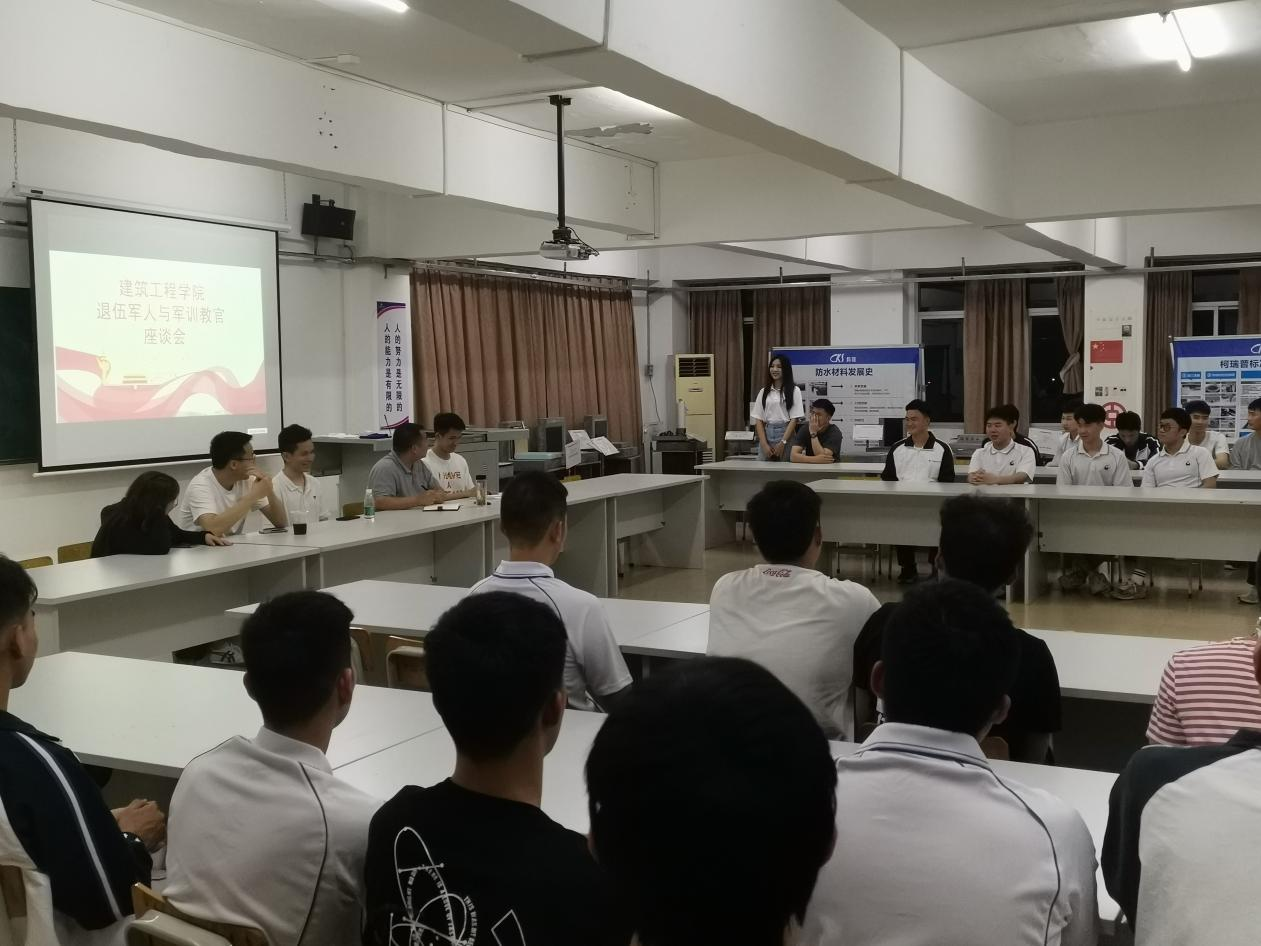 建筑工程学院学工办于3月30日19:30在建工机电楼503课室召开了退伍军人与军训教官座谈会。学院党委书记张双,辅导员赖伟杰、洪娆钰、陈健辉,2019级、2020级退伍军人以及报名参加军训教官的共计74名学生参与会议,座谈会由征兵专员胡国兴主持。