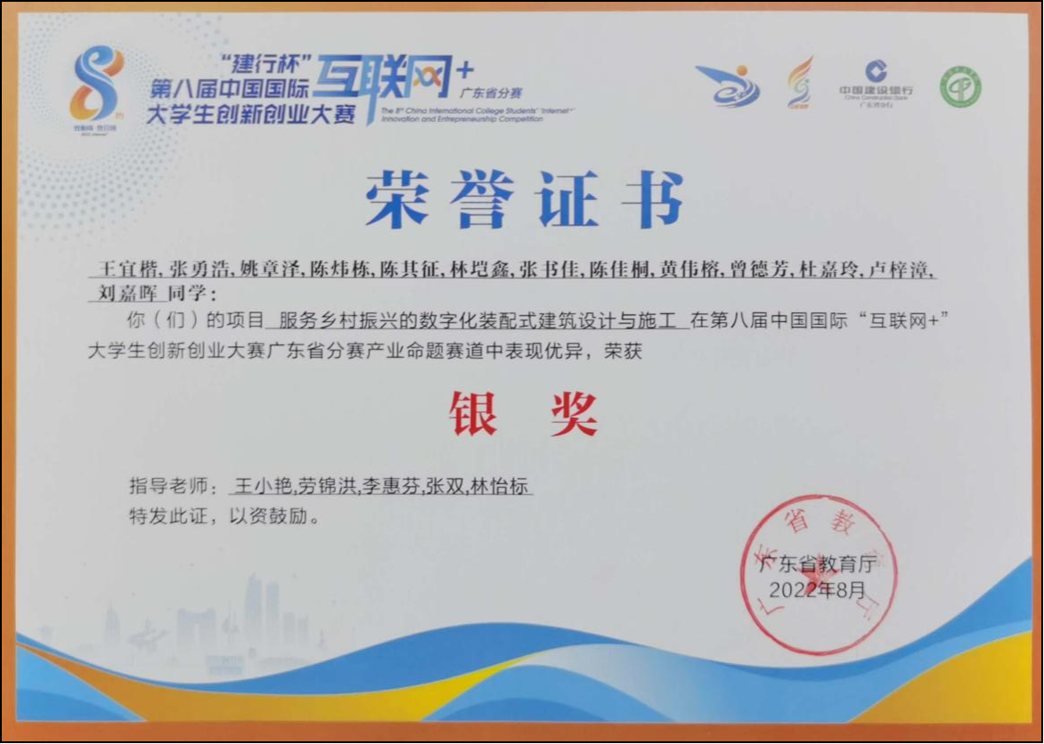 1.2022年8月第八届“互联网+”大学生创新创业大赛(产业赛道)省级银奖;