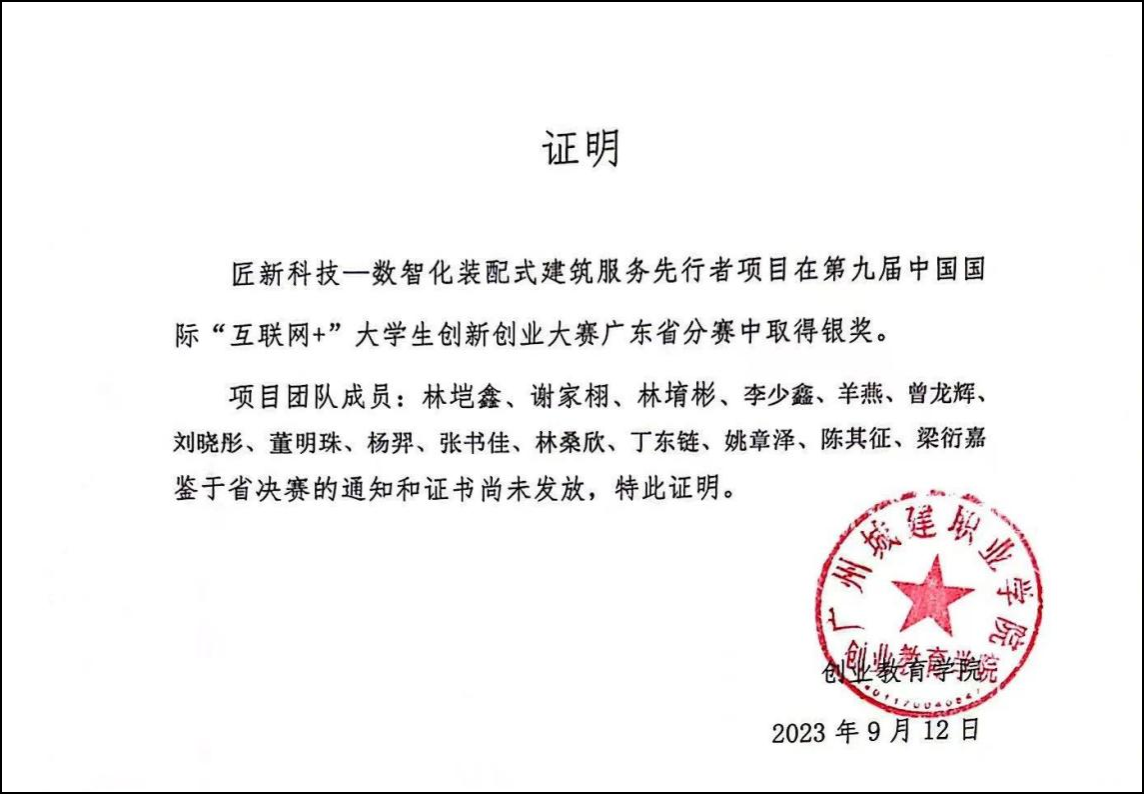 9.2022年11月第五届全国装配式职业技能竞赛二等奖。