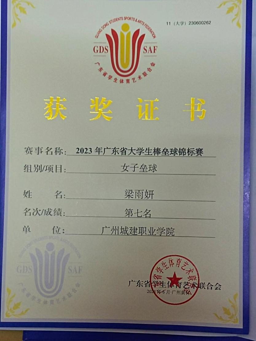 2023年广东省大学生棒垒球锦标赛女子垒球第七名