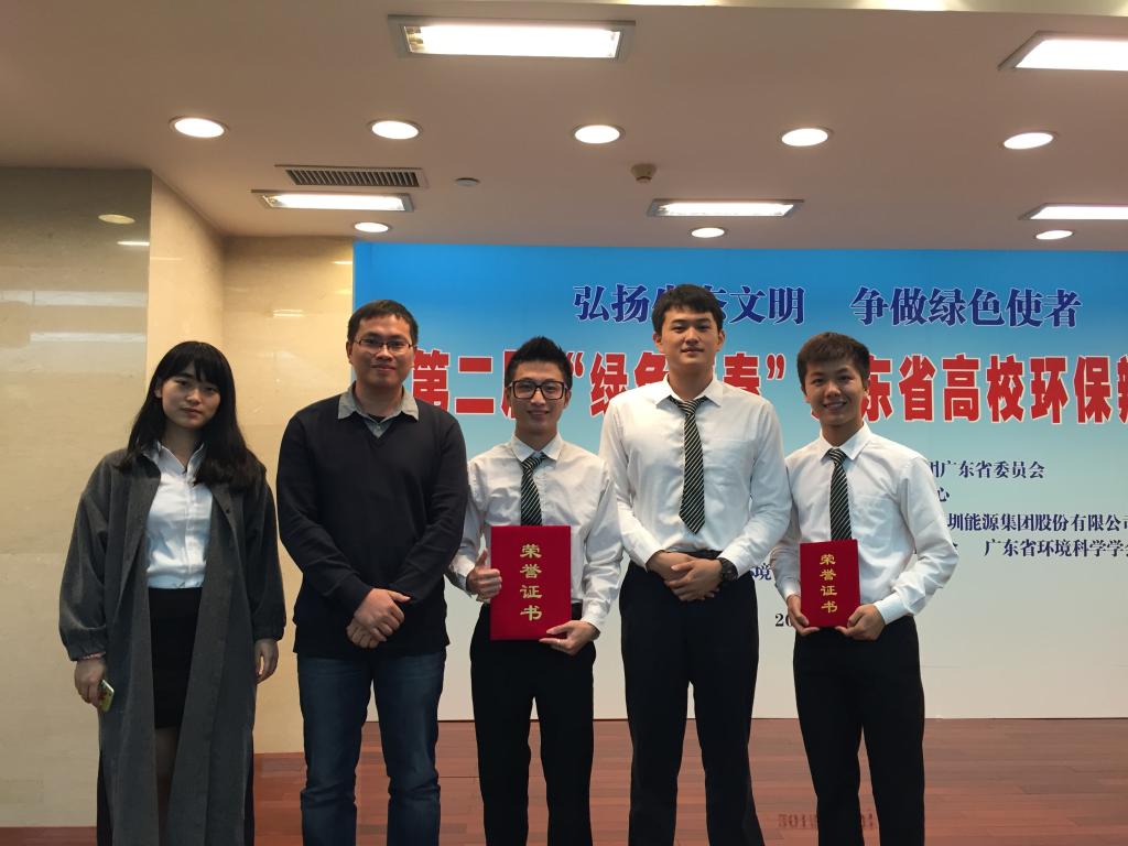 继广东省第二届大学生“廉洁•诚信”主题辩论赛,我校建筑工程学院辩论队(谢荣桂、陈锦华、柯凯建、黄百灵、易丹)在第二届“绿色青春”广东高校环保辩论赛中再创佳绩,在获得“优秀团队奖”的同时,陈锦华同学更获得“优秀辩手”荣誉称号。