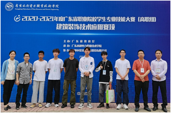 2021年3月27日,由广东省教育厅主办的2020-2021年度广东省职业院校学生专业技能大赛(高职组)“建筑装饰技术应用”赛项在广东水利电力职业技术学院举办。我校建筑工程学院派出2支参赛代表队,由高华副院长领队,建筑装饰教研室马淑仪、林怡标老师和建筑设计教研室周可亮、胡明老师担任指导老师,19级建筑装饰工程技术专业学生庄思创、梁钰培、陈思杭同学和19建筑设计专业李恩杰 、李国洲、雷海鹏同学组成参赛代表队,经过5个小时的高强度竞赛,通过激烈角逐最后脱颖而出,分别荣获一等奖和二等奖的佳绩!