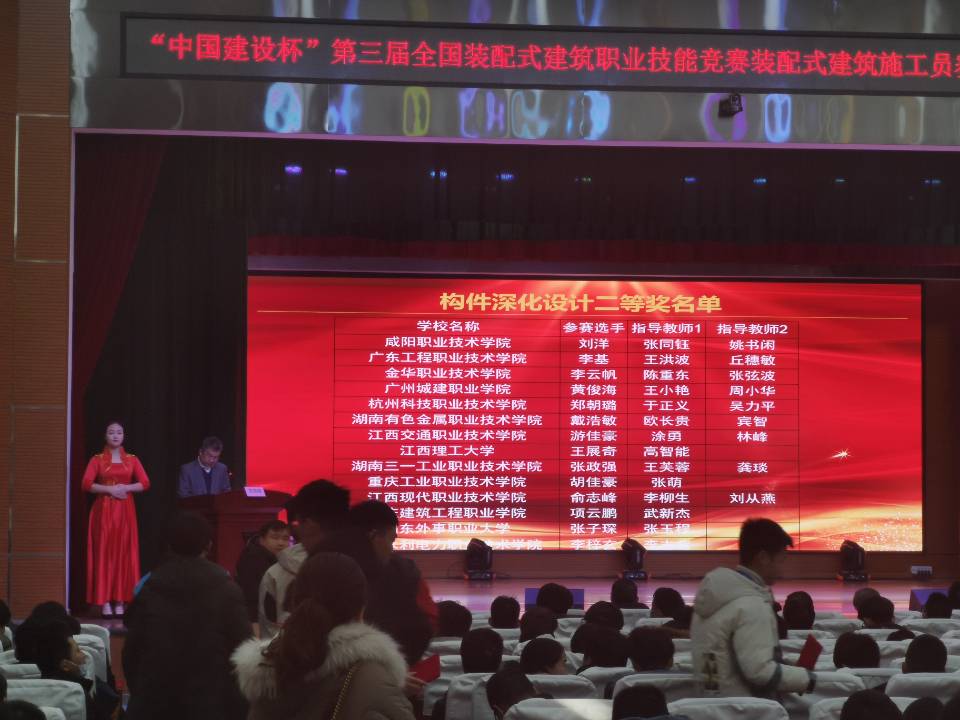 12月4日至6日,2020年全国行业职业技能竞赛—“中国建设杯”第三届全国装配式建筑职业技能竞赛装配式建筑施工员赛项(学生组)全国总决赛在河南建筑职业技术学院举行,我校建筑工程学院学子与东华理工大学、江西理工大学、汕头大学等来自全国各地的院校同学同场竞技,经过历时三天的激烈角逐,19级装配化施工1班黄俊海同学获构件深化设计赛项二等奖;彭一剑同学获构件制作与安装三等奖。指导老师分别为王小艳、周小华、杨树峰、刘丘林。