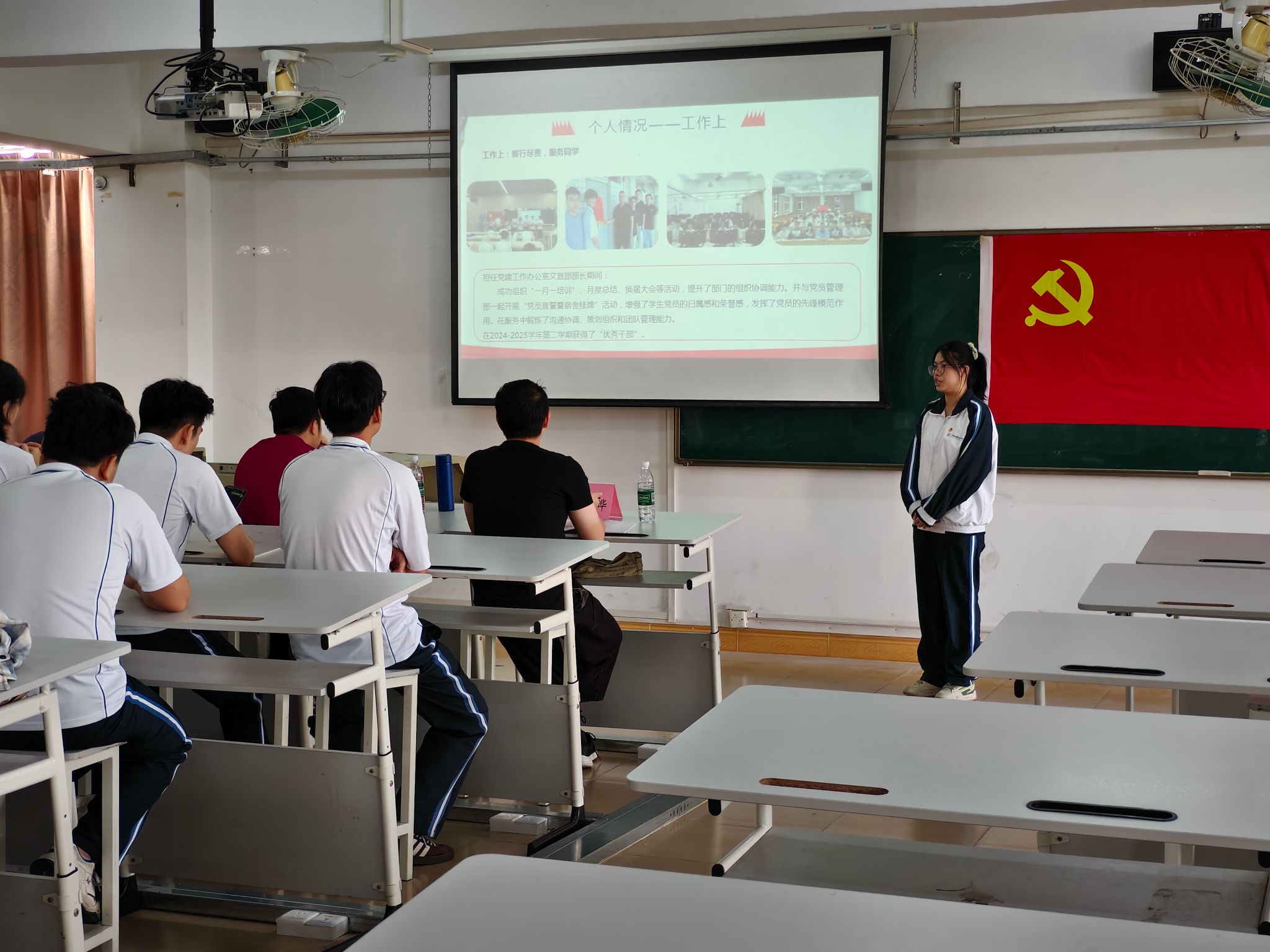 大会在庄严的国歌声中拉开序幕。方晓东书记带领全体人员学习习近平总书记在广东考察的重要讲话精神,他号召全体师生党员要深刻领会精神内核,把讲话要求转化为支部建设和育人实践的具体行动。随后,24名发展对象依次上台结合思想成长、学业表现、工作实践等方面,详细汇报了培养考察期间的感悟与收获,明确了今后的努力方向,坚定表达了追随党的信念与入党决心。在听取发展对象汇报后,与会正式党员充分酝酿,结合每位发展对象的综合表现充分讨论,逐一发表意见并进行无记名投票表决。
