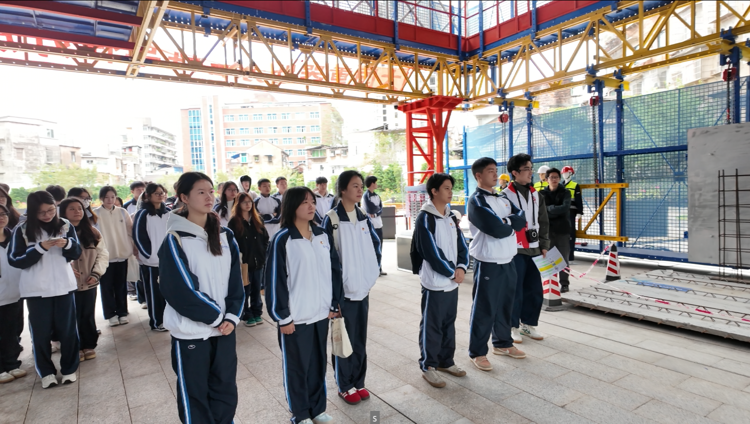 同学们参观模拟工地现场