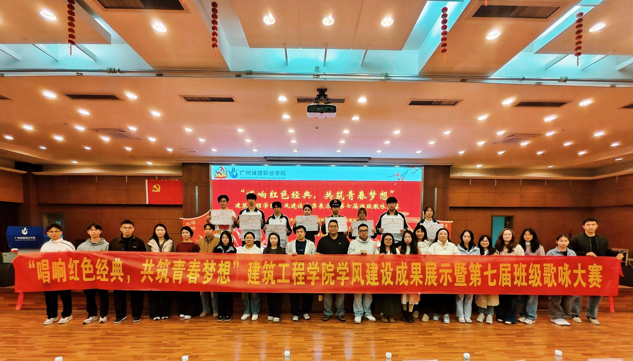评委从形象礼仪、演唱内容、舞台表现等方面进行综合评分。经过激烈的角逐,2025城轨管理2班凭借出色表现荣获一等奖。最后,彭聪作总结点评。他表示,这次活动既是一场精彩纷呈的歌咏比赛,更是一次生动深刻的学风建设主题教育。每首歌都饱含着同学们对党、对祖国、对人民的无限热爱,每个旋律都彰显着建工学子朝气蓬勃、奋发向上的精神风貌。他希望各班级以此次比赛契机,从红色歌曲中汲取精神力量,把个人理想融入国家发展和民族复兴的伟大事业中,深耕专业知识,锤炼过硬本领,共同营造和谐向上的班级氛围,为学院的发展贡献青春力量。