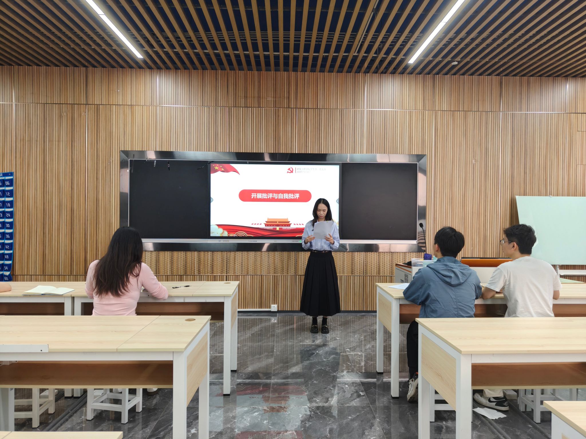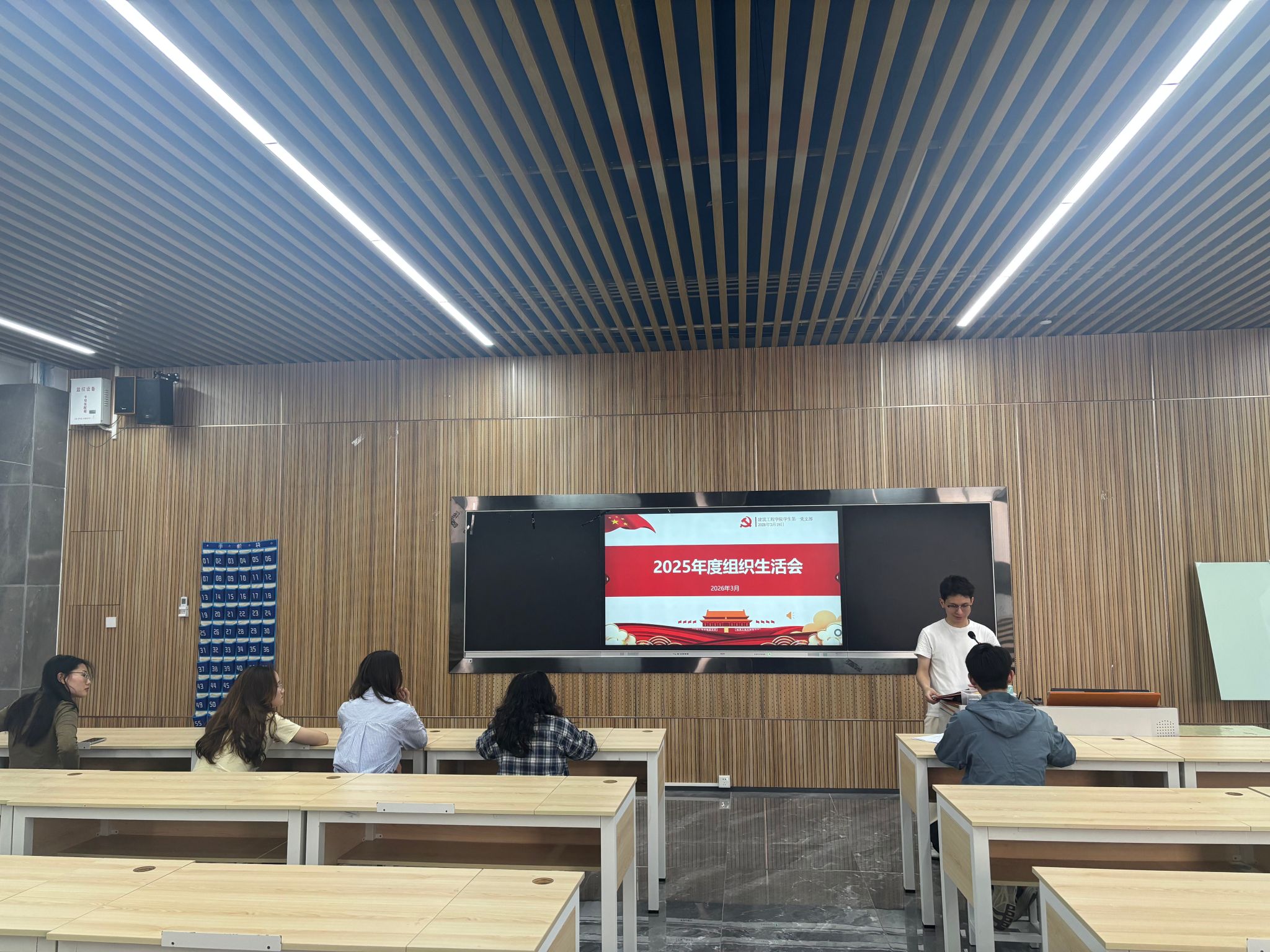 为深入学习贯彻党的二十届四中全会精神,严格落实党内各项制度要求,不断增强党支部自我提升的能力,2026年3月18日下午5时,建筑工程学院学生第一党支部在建工机电楼B栋204D课室召开组织生活会暨民主评议党员大会,党支部全体党员参会,党支部书记陈健辉同志主持会议。