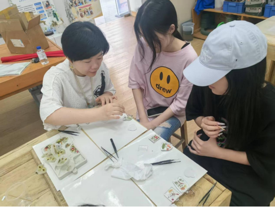 石昭华老师在演示AB滴胶钥匙扣制作方法