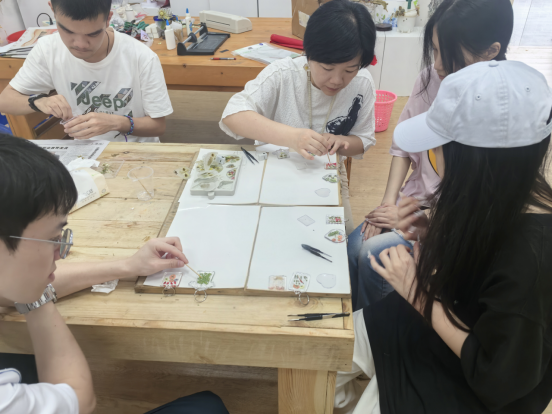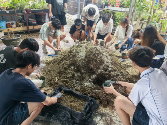 本次课程将理论知识与实践操作紧密结合,涵盖园林种植与压花艺术两大板块。课程邀请了建筑工程学院石昭华和徐瑞萍两位园林专业老师授课。在苗圃,同学们认识植物、了解泥土分类以及植物生长周期等园林种植中插芊与上盆的基本知识,在老师的指导下亲自动手体验了薄荷的插芊和移栽;在压花艺术工作室,同学们了解到压花工艺,并在老师的指导下,充分发挥想象力与创造力,将自然界中的花草树叶,精心制作成精美的压花作品。