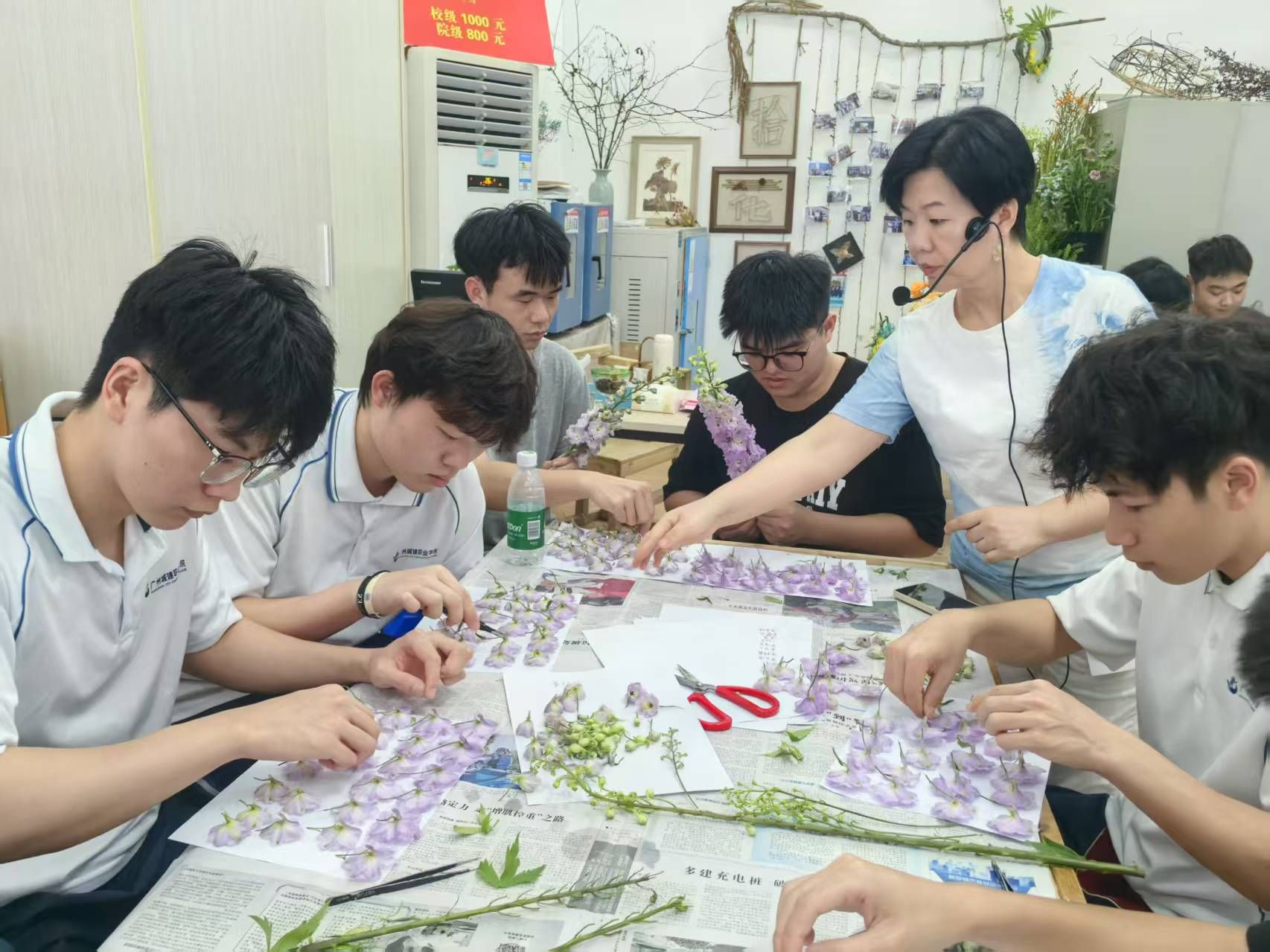 石老师指导进行花材处理与压花实践