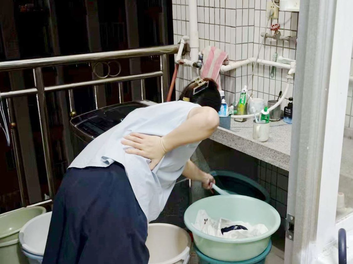 辅导员查看学生宿舍积水情况