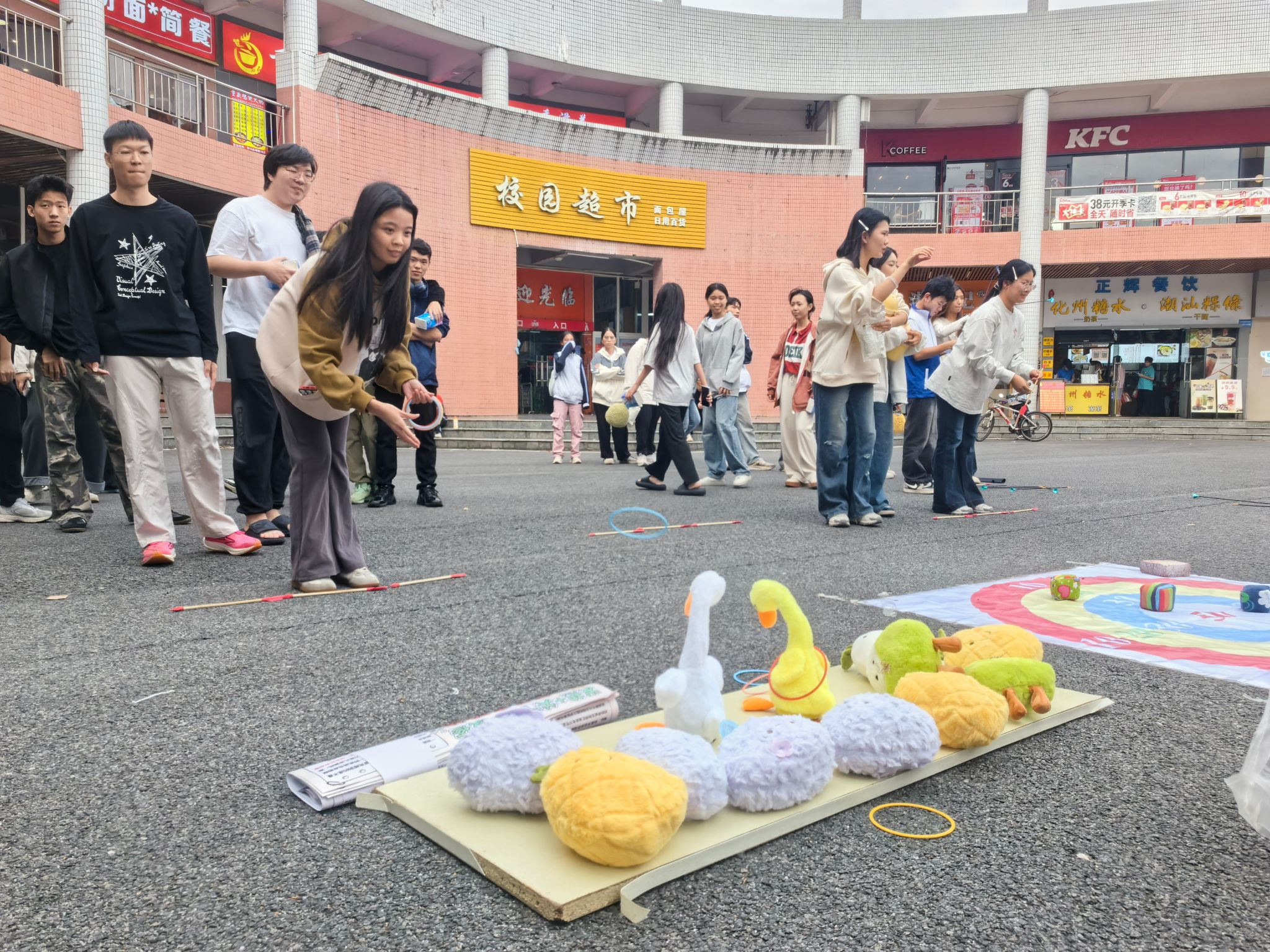 本次体育节主打“趣味”与“互动”,设置了呼啦圈、投壶、射箭、套大鹅、掷沙包等多项集趣味性、挑战性和传统文化于一体的游戏项目。这些活动不仅考验同学们的动手能力和身体协调性,更让大家在欢声笑语中释放了压力,增进了彼此间的友谊,现场欢声笑语不断。“上了一周课,能参加这样好玩又解压的活动真的太棒了!”现场同学兴奋地分享道,“特别是‘套大鹅’,非常有趣,感觉瞬间回到了童年。我还赢得奖品,特别有成就感!”