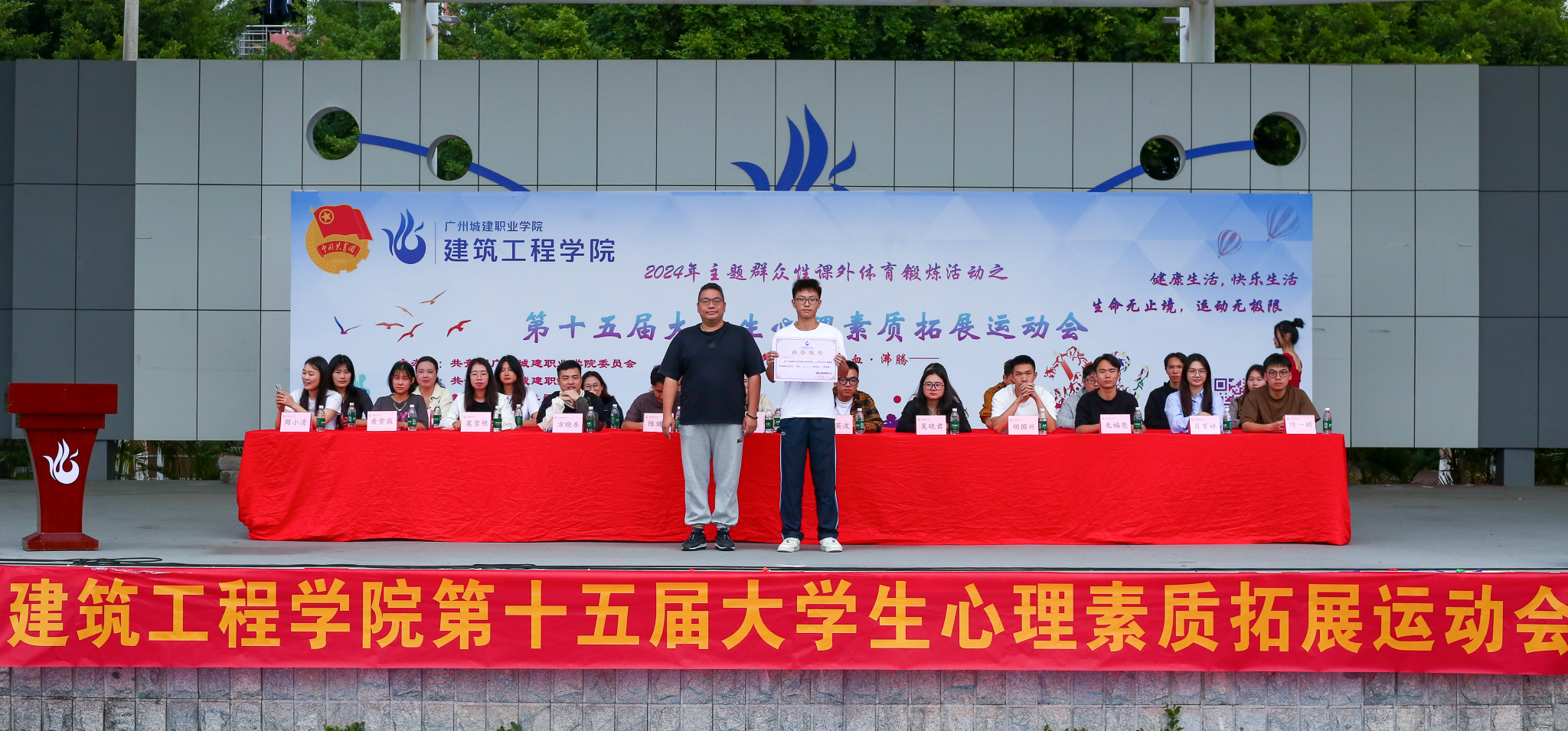 11月10日,由学校团委主办,建筑工程学院团委承办的第十五届大学生心理素质拓展运动会于学校田径场场隆重举行。学院党委书记、院长吴承霞,副书记、副院长彭聪,团委书记甄英波,学工办全体辅导员以及全体2024级学生1300余人参与本次运动会。