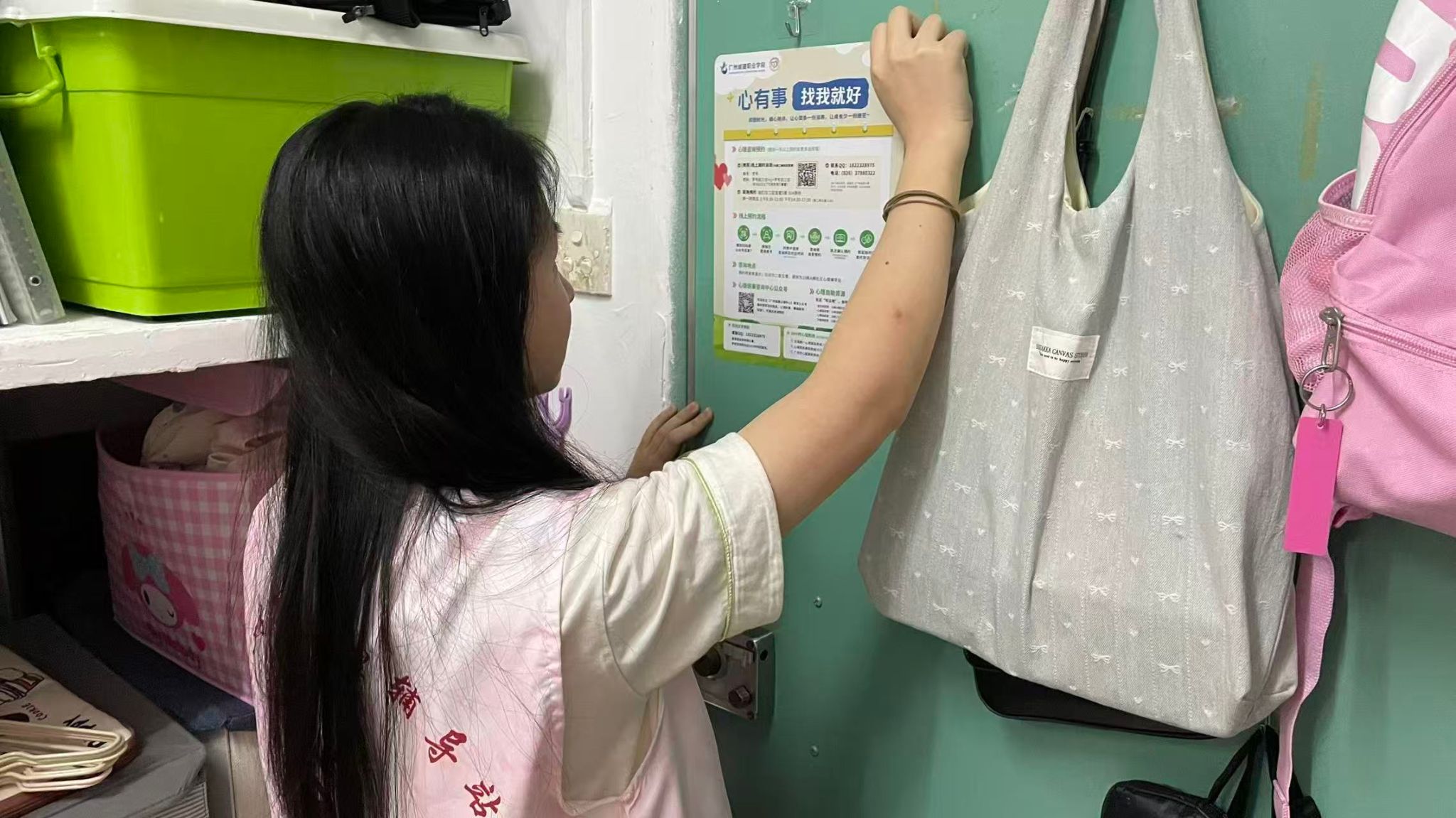 活动中,心站工作人员逐间走访学生宿舍,将印有心理咨询预约方式、线上倾诉渠道及心理援助热线的指引海报,规范张贴在宿舍。工作人员细致落实完成张贴工作,确保每一间宿舍都能清晰地看到咨询信息。同时向同学们详细介绍指引功能,让大家了解“有困扰时可以向谁求助、怎么求助”,引导学生建立主动寻求支持的意识。此前,学院辅导员也深入学生宿舍开展“心有事·找我就好”心理健康指引张贴与宣传工作,将心理咨询预约方式、线上支持渠道及心理援助热线等信息送至每一间宿舍,使心理关怀的“入口”进一步贴近学生生活空间,营造“有需可说、有处可寻、有人可依”的支持氛围。