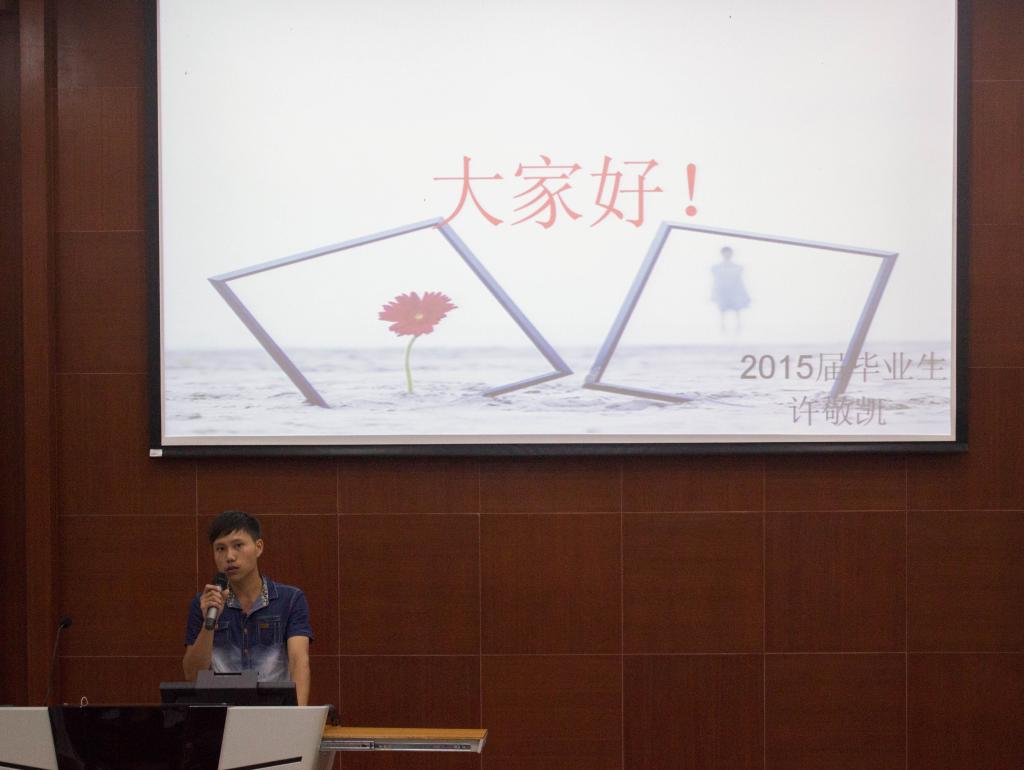 报告会上,张双副院长不仅肯定了我院资助管理中心目前资助工作所取得的成绩,同时也寄语每一位受助生都能成长成人成才,在建筑行业发光发热发亮。随后,三名往届优秀毕业生分别向师弟师妹们分享他们的成长故事,传授了经验。其中,2012级的林东成和许敬凯以自己的真实故事为题材,感人肺腑的激情演讲,亲情共融的现场互动,获得阵阵热烈的掌声,使在座的学生获益良多。接着,吴少强师兄则以真挚、实在的分享演讲,给师弟师妹们零距离地展示了在工作岗位上的点点滴滴,并真诚地对曾给予他帮助的学校、老师以及同学表示深深的感谢。
