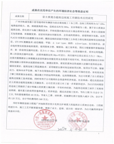 1、科技成果在广州市轨道交通十四号线邓村车辆段与综合基地施工I标工程施工中效果突出显著,成果具有鲜明的先进性、合理性,效果显著对相同类的工程,具有指导性和使用价值,值得推广使用!